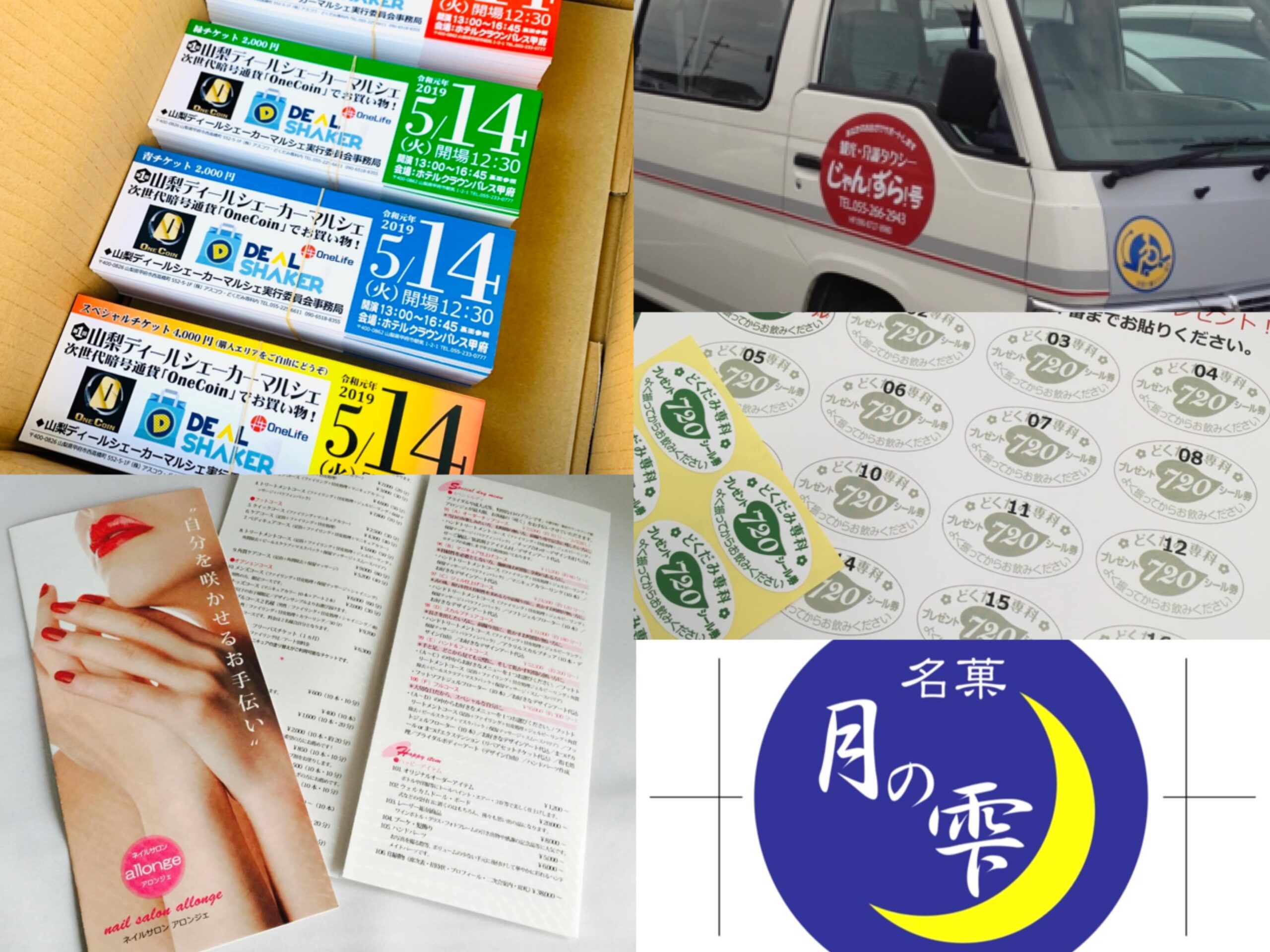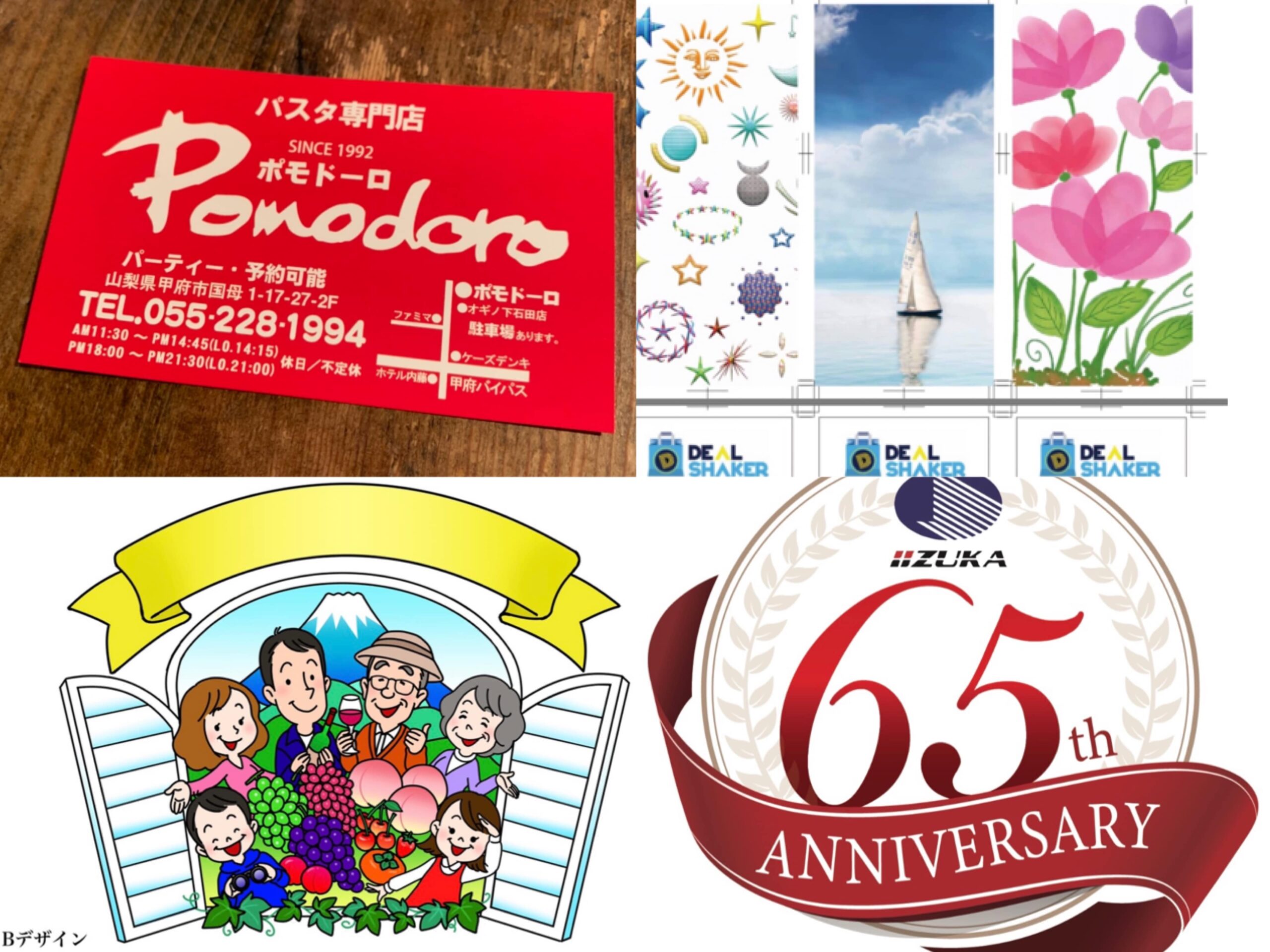 名刺・ハガキ・封筒・カタログ・パンフレット・各種伝票・ポスター・会社案内・商品案内・チラシ・DM・メニュー・カレンダー・美術画集・記念誌・PR誌・自費出版・シール・ステッカー・ゴム印・書籍・パッケージ・包装紙・キャラクター作成・シンボルマーク・ロゴタイプ・名簿・絵本・外国語翻訳作成・特殊印刷等